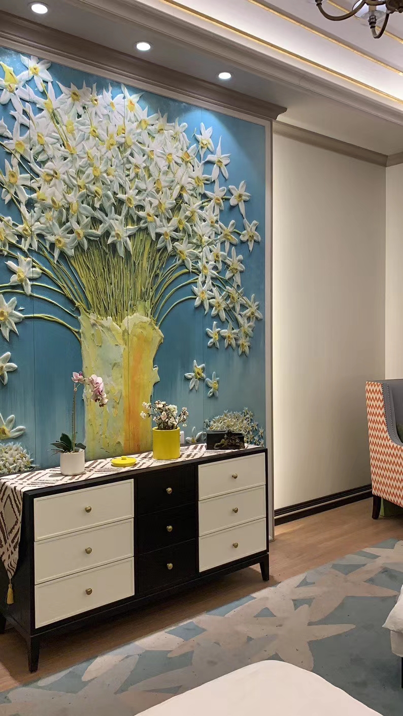 澆筑石膏裝飾板具有質(zhì)輕、防潮、不變形、防火、阻燃等特點。并有施工方便,加工性能好,可鋸、可釘、可刨、可粘結(jié)等優(yōu)點。主要品種有:各種平板、花紋浮雕板、半穿孔板、全穿孔板、防水板等。花紋浮雕板適用于居室的客廳、臥室、書房吊頂;防水板多用于廚房、衛(wèi)生間等濕度較大的場所。